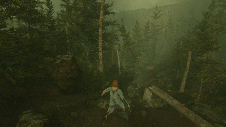 Baby Steps’in dünyası minimalist ama büyüleyici. Geniş, sisli dağlık alanlar, yosun tutmuş kayalıklar, derin vadiler ve zaman zaman çıkan fırtınalar, hem huzurlu hem de ürkütücü bir atmosfer yaratıyor.